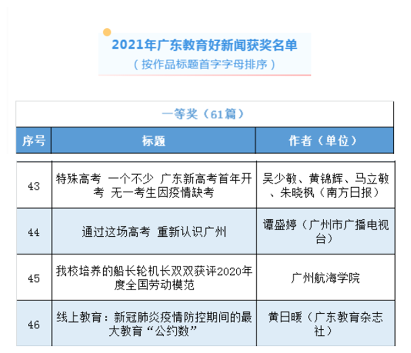 3月18日,由广东省教育厅举办的2021年广东教育好新闻评选活动结果揭晓。m88新闻报道《m88培养的船长轮机长双双获评2020年度全国劳动模范》获得一等奖。https://mp.weixin.qq.com/s/1iW1I0b6dUlLIfyTo0KG_g该报道还被广州市人民政府网站转载。