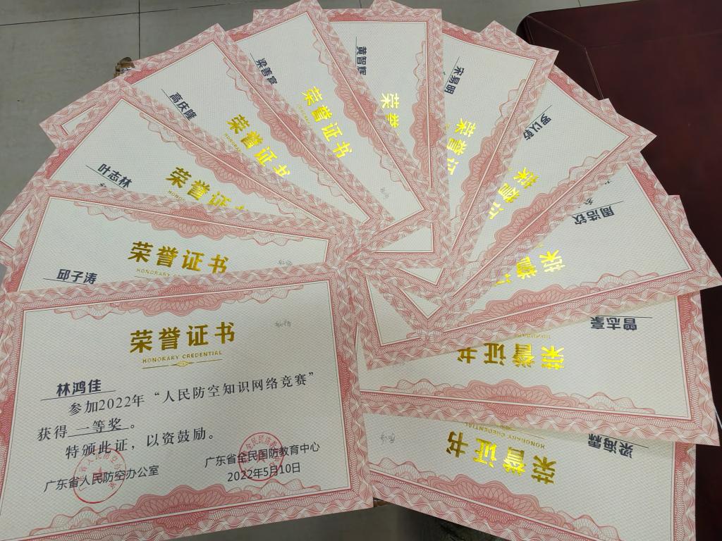 (学生工作处 供稿)近日,由广东省人民防空办公室主办的2022年人民防空知识网络竞赛结果出炉,m88学生荣获一等奖11项,二等奖7项,三等奖12项,成绩斐然!同时,学校获评“优秀组织奖”,学生工作处陈鼎斌同志获评“优秀指导老师”。