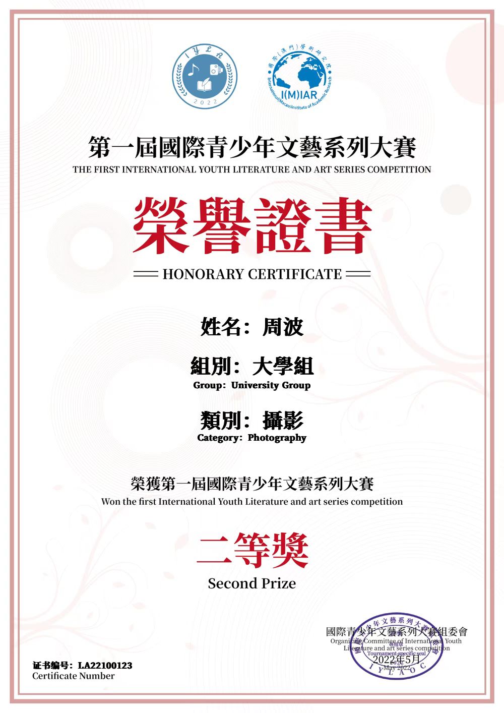 (海运学院 供稿)近日,从国际青少年文艺系列大赛组委会公布的《“国际青少年文艺系列大赛”初赛获奖名单——才艺类:摄影》的获奖名单中,海运学院航海技术215周波作品获得二等奖、航海191黄德锋作品(指导老师:吴成结)获得三等奖。