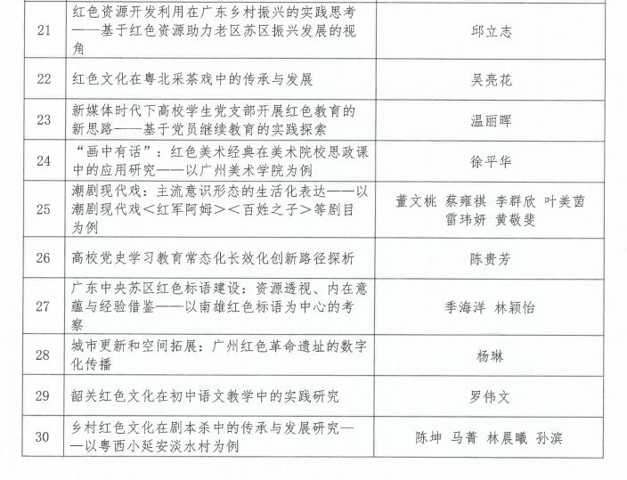 (党委宣传部、国际邮轮邮艇学院、艺术设计学院 联合供稿)近日,由2022年岭南学术论坛、“红色文化在广东实践中的传承与发展”专题论坛组委会、广东岭南红色文化研究员联合举办的主题征文活动圆满结束,m88陈坤、马菁、林晨曦、孙滨撰写的《乡村红色文化在剧本杀中的传承与发展研究——以粤西小延安淡水村为例》,陈小芳、覃群、陈驰撰写的《红色文化赋能乡村振兴的创新路径研究——以汕尾陆河县北中村为例》喜获专题论坛优秀论文。
