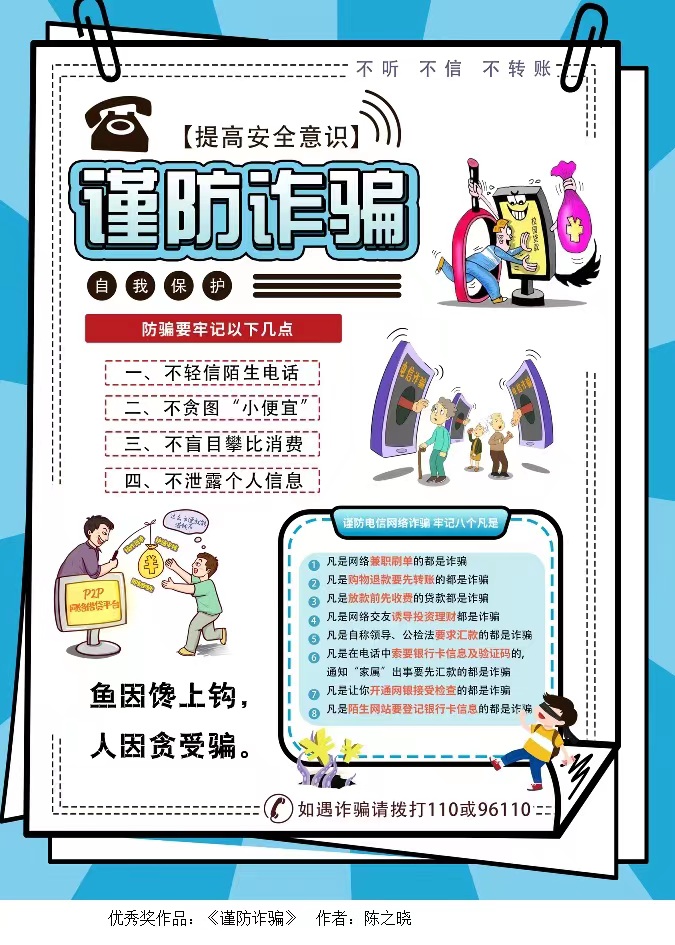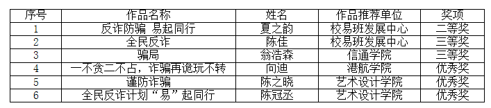 (学工处 供稿)近日,由广东高校网络思想政治工作中心主办,广东轻工职业技术学院易班工作站、广东轻工职业技术学院“轻年说”网络工作室承办的“反诈防骗,易起同行”海报设计大赛活动获奖名单公布。经专家评审评定,全省共评出一等奖3名、二等奖6名、三等奖9名,优秀奖10名。m88易班发展中心积极组织各学院学生参赛,共报送了25份作品参赛,喜获二等奖1项、三等奖2项、优秀奖3项。