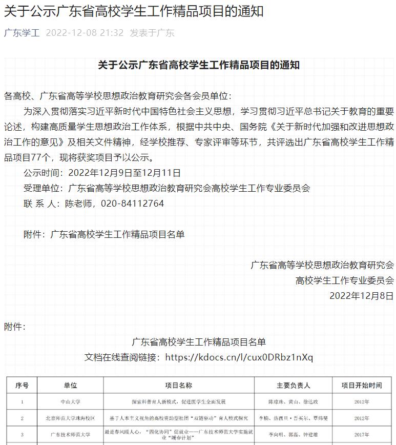 (学工处 船舶与海洋工程学院 供稿)为深入贯彻落实习近平新时代中国特色社会主义思想,学习贯彻习近平总书记关于教育的重要论述,构建高质量学生思想政治工作体系,根据中共中央、国务院《关于新时代加强和改进思想政治工作的意见》及相关文件精神,经学校推荐、专家评审等环节,广东省高等学校思想政治教育研究会高校学生工作专业委员会共评选出广东省高校学生工作精品项目77个,m88船舶与海洋工程学院项目《“三色交融”培育大学生党员先锋的探索与实践》获评2022年“广东省高校学生工作精品项目”。