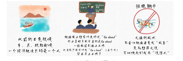 其中获得一等奖的是由海运学院陈丹涌副教授指导、蓝天(航海216班)和陈畅炀(航海215 班)两位同学创作的50张“航海小蓝”漫画。航海很苦,海水很咸,同时也充满着很多智慧,两位同学通过一张一张的手绘漫画,汇集起航海路上的点滴启发,立志做航海界的“小林漫画”。