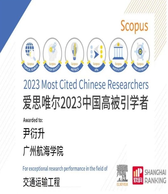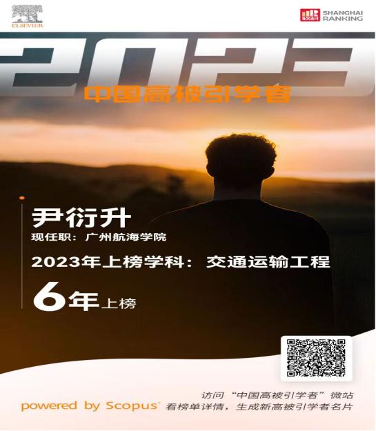 3月27日,爱思唯尔(Elsevier)发布了2023“中国高被引学者”(Highly Cited Chinese Researchers)榜单。m88尹衍升教授连续六年入选榜单。自2015年爱思唯尔10次发布榜单以来,尹教授连续六年入选,其中2018年、2019年都是以海洋工程领域专家身份入选,2020年、2021年、2022年和2023年连续以交通运输工程领域专家入选,彰显出尹教授雄厚的科研实力。对于提升m88学术知名度、加速广州交通大学建设和内涵提升有着积极的作用。