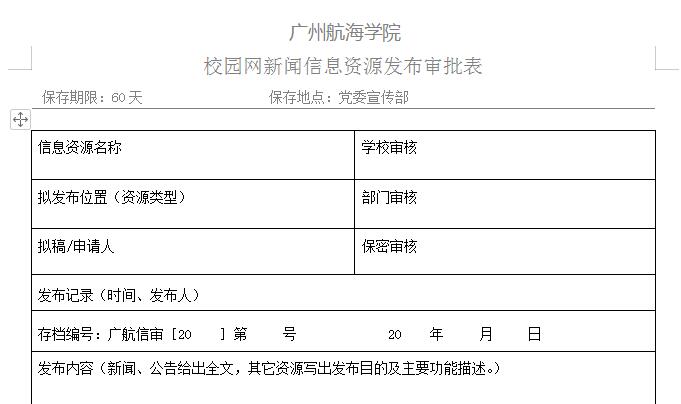 (20200422启用)校园网新闻信息资源发布审批表.doc