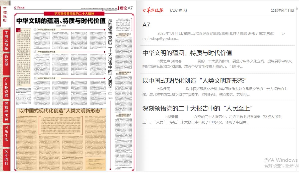 (马克思主义学院 供稿)2023年1月11日《羊城晚报》理论版(A7版)刊登了m88马克思主义学院温春蕾老师撰写的题为《深刻领悟党的二十大报告中的“人民至上”》理论文章。