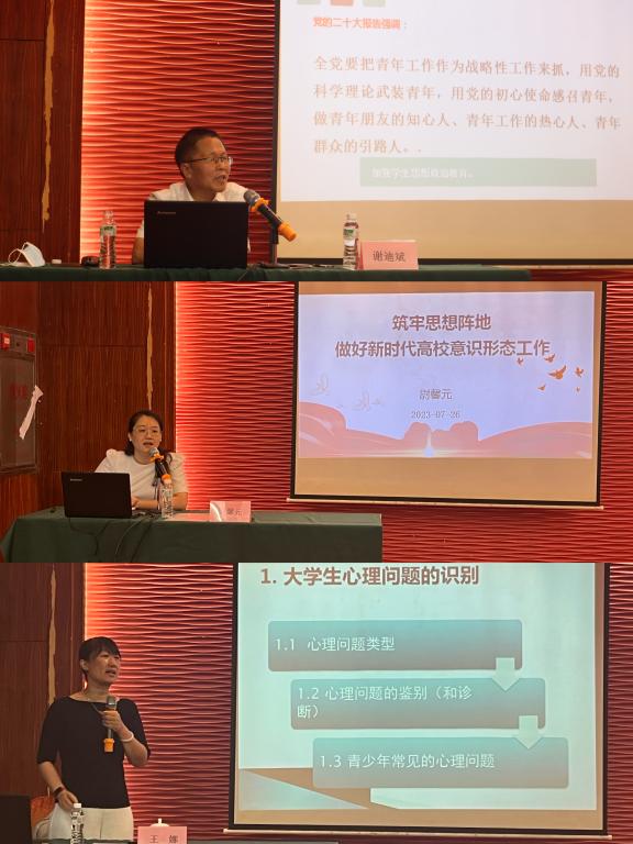 在专题讲座教学环节,广东外语外贸大学马克思主义学院名誉院长、教授谢迪斌,中共广东省委党校(广东行政学院)应急管理教研部副教授尉馨元,韩山师范学院心理学系副教授王娜三位专家分别以《学习贯彻党的二十大精神,推动学生思想政治工作高质量发展》《筑牢思想阵地,做好新时代高校意识形态工作》《大学生心理危机识别干预与辅导员心理调适》为题,为全体学员带来了专业深刻且具有实践指导意义的讲座。三位讲师立足自身工作经验,以鲜明的观点、独到的见解和生动的案例,先后深刻剖析了党的二十大关于学生思想政治工作的重要论述与新时代学生思想政治工作、新时代高校意识形态面临的风险挑战与工作着力点、大学生常见心理问题识别与心理危机干预方法技巧。课后,全体学员围绕大学生思想政治工作高质量发展展开了深入的研讨。